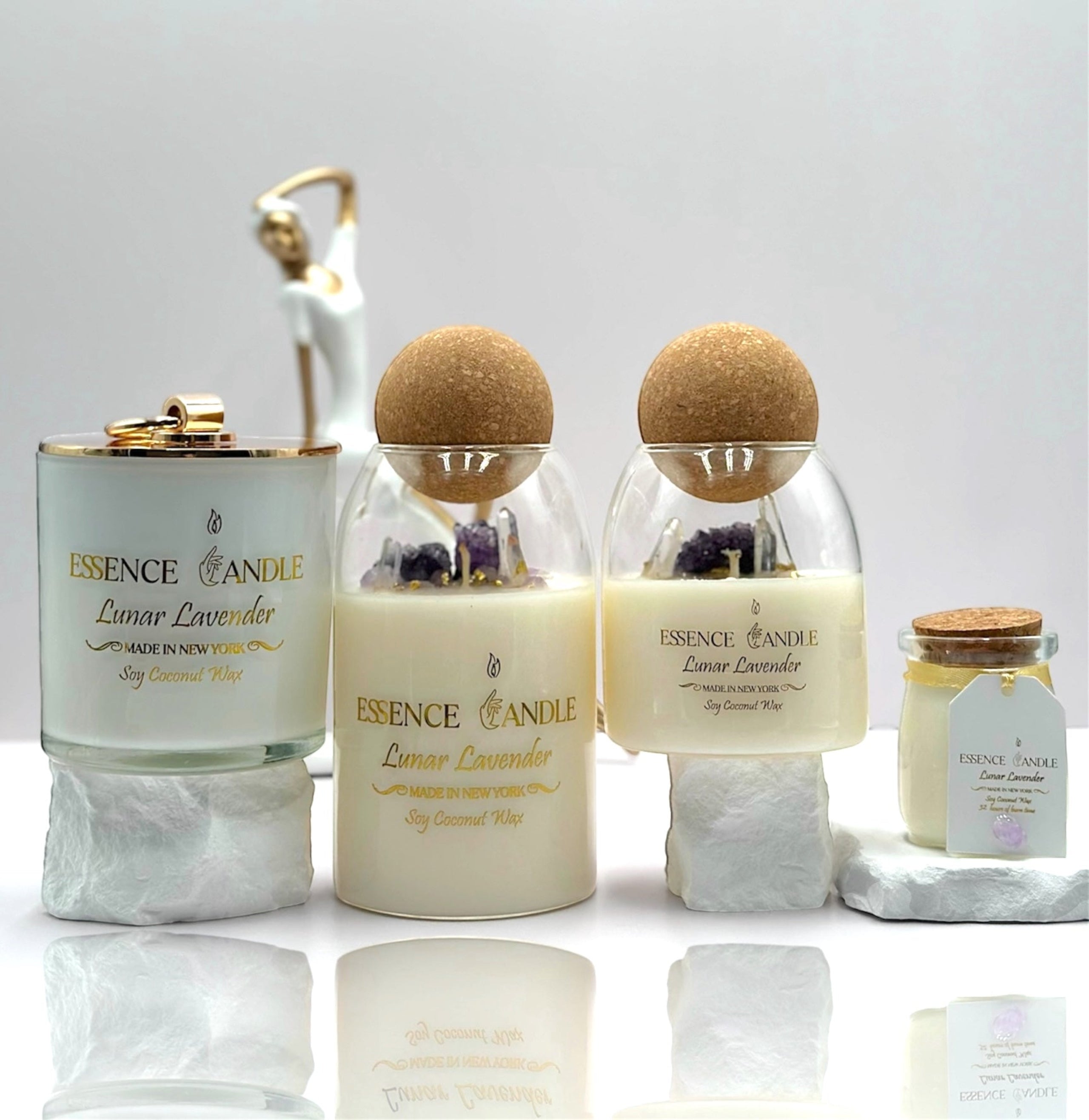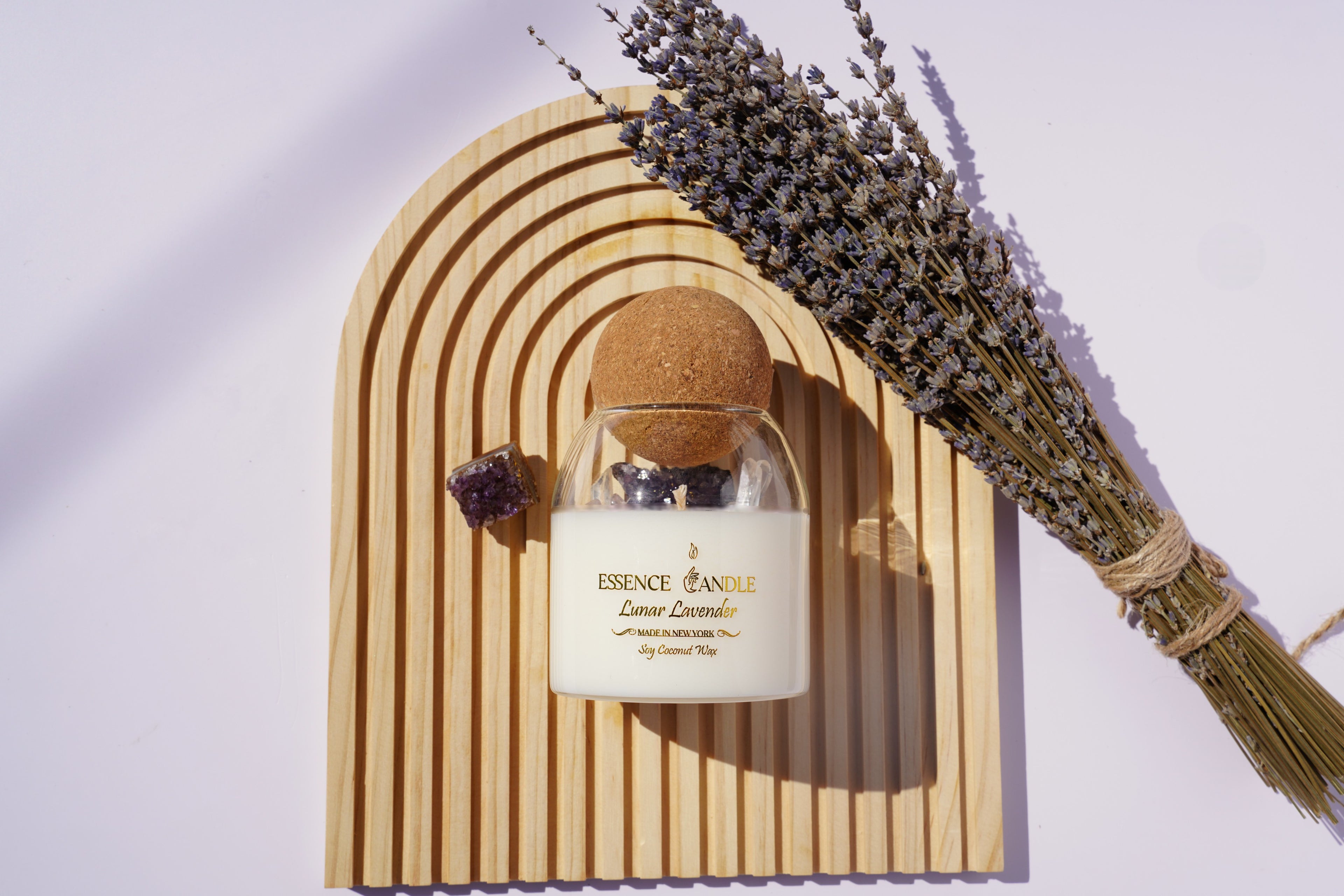 Handmade in New York, Lunar Lavender is a luxury lavender crystal candle...