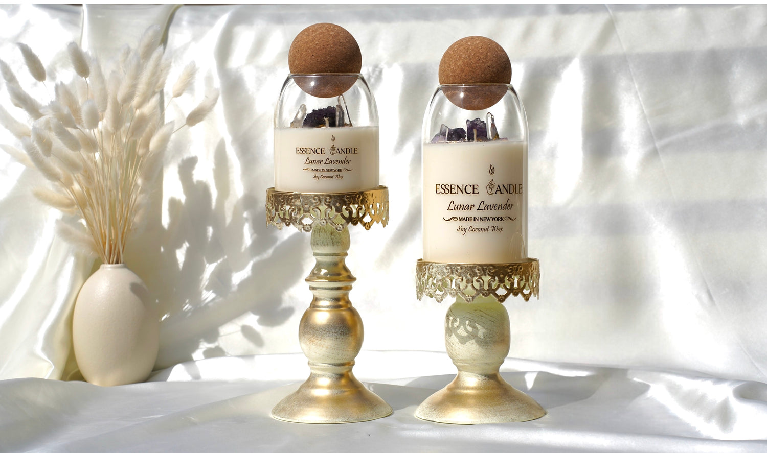 Breathe into calm with Lunar Lavender — a luxury crystal candle handmade with eco-friendly soy and coconut wax and pure cotton wicks. Amethyst inspires peace, Clear Quartz amplifies balance, and gold detailing elevates every flame. Lunar Lavender is more than fragrance — it is a gift of serenity, clarity, and timeless luxury.